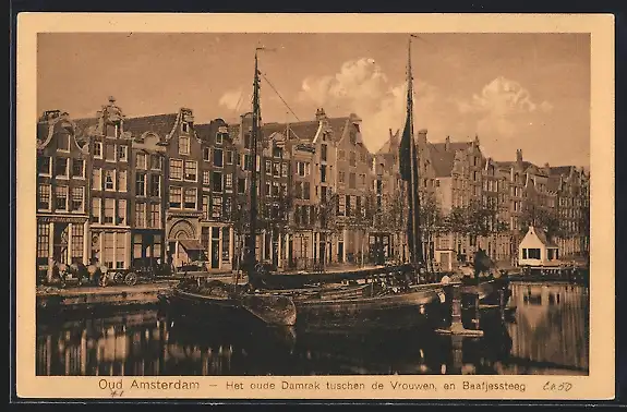 AK Amsterdam, Het oude Damrak tuschen de Vrouwen, en Baafjessteeg