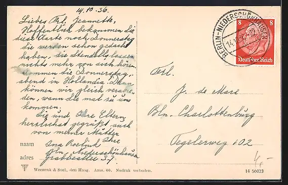 alte Ansichtskarte, gelaufen 1936, guter Zustand