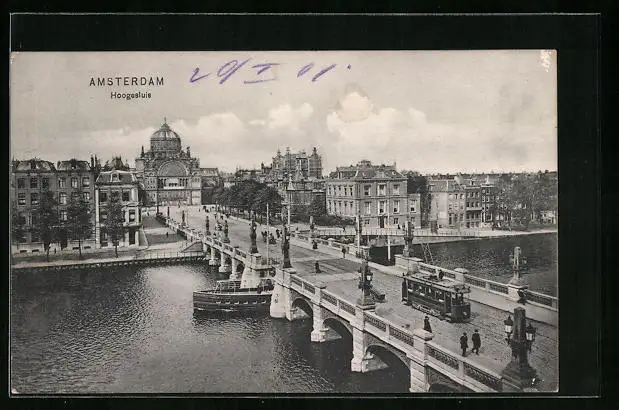 AK Amsterdam, Hoogesluis, Strassenbahn