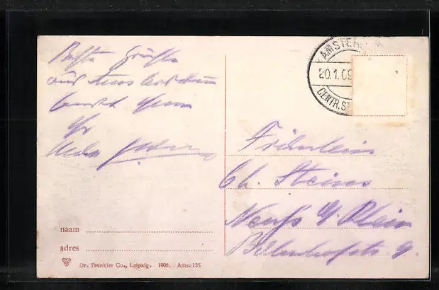 alte Ansichtskarte, gelaufen 1909, Briefmarke entfernt, guter Zustand