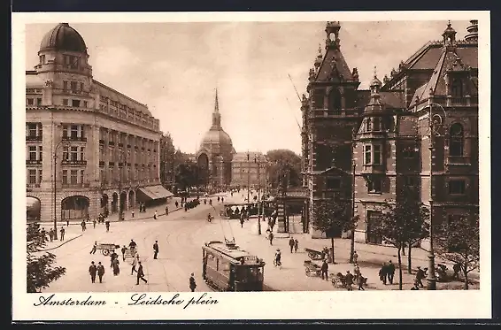 AK Amsterdam, Leidscheplein, Strassenbahn