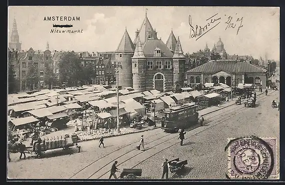 AK Amsterdam, Nieuwmarkt, Strassenbahn