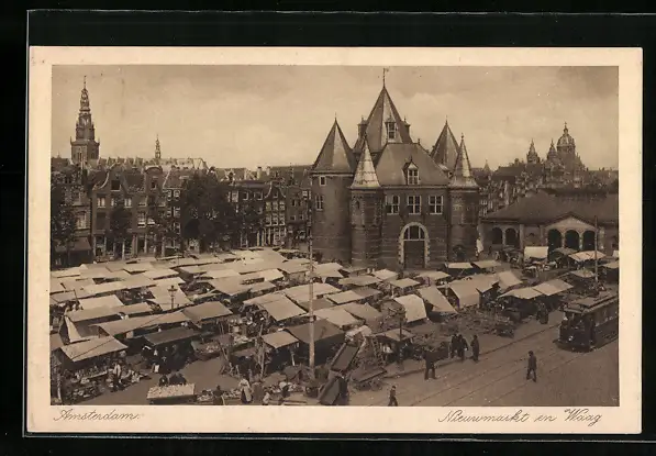 AK Amsterdam, Nieuwmarkt met Waag und Strassenbahn