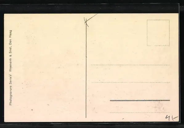 Personenbezogene Daten auf der Rückseite der Karte wurden durch blauen Textmarker unkenntlich gemacht. Die blauen Stellen sind auf die Vorderseite durchgeweicht und wirken sich negativ auf das Postkartenfoto aus