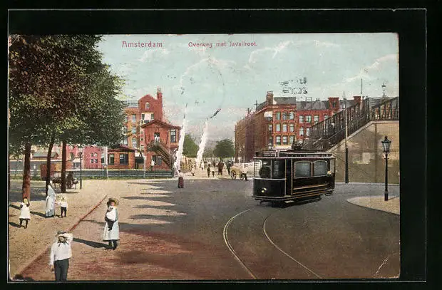 AK Amsterdam, Overweg met Javailroot, Strassenbahn