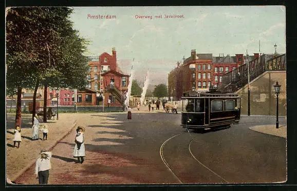 AK Amsterdam, Overweg met Javailroot, Strassenbahn