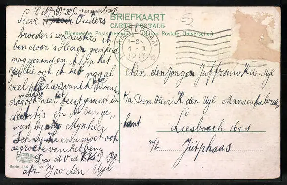 alte Ansichtskarte, gelaufen 1917, Briefmarke entfernt, rückseitig Oberflächenschaden, Eckknicke oben, guter Zustand