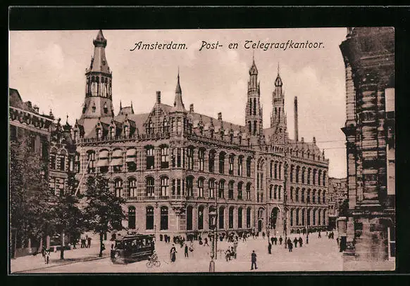 AK Amsterdam, Post- en Telegraafkantoor, Strassenbahn