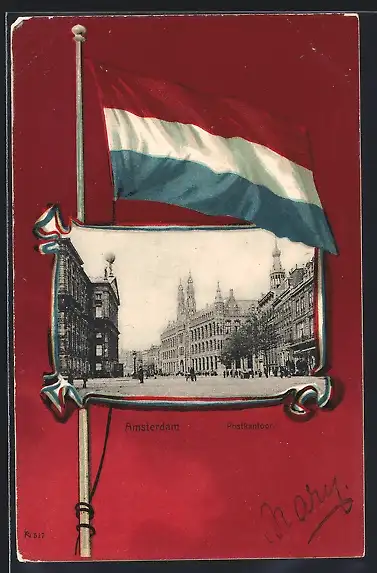 AK Amsterdam, Postkantoor, niederländische Flagge