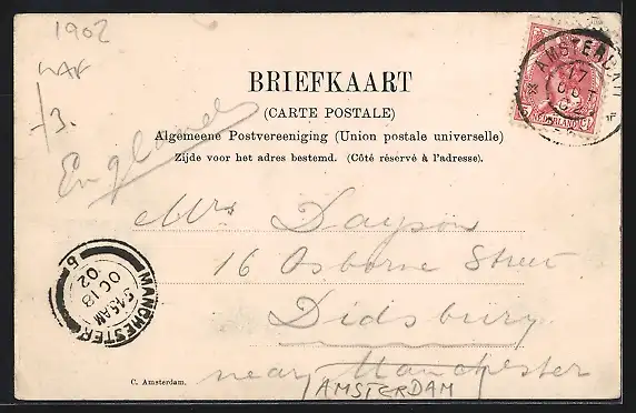 alte Ansichtskarte, gelaufen 1902, Stempelspur, guter Zustand
