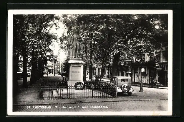 AK Amsterdam, Thorbeckeplein met Standbeeld