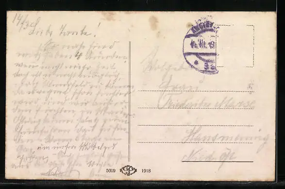 alte Ansichtskarte, gelaufen, Briefmarke entfernt, guter Zustand