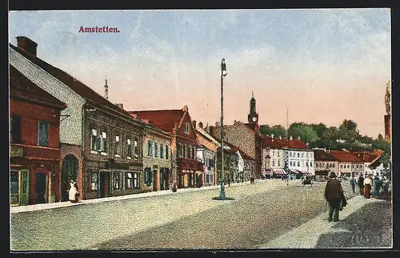 AK Amstetten, Strassenpartie mit Geschäften
