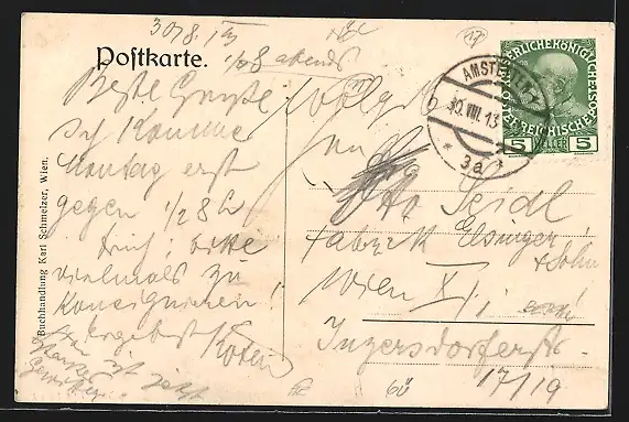 alte Ansichtskarte, gelaufen 1913, Stempelspur, guter Zustand