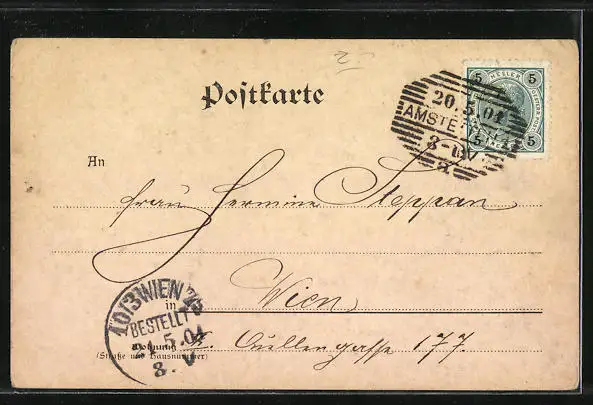 alte Ansichtskarte, gelaufen 1901, Stempelspur, guter Zustand