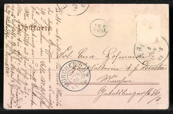 alte Ansichtskarte, gelaufen 1905, Briefmarke entfernt, rückseitig Oberflächenschaden, guter Zustand