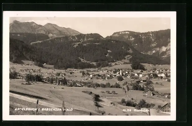 AK Andelsbuch, Ortsansicht mit Wiesen und Bergkette