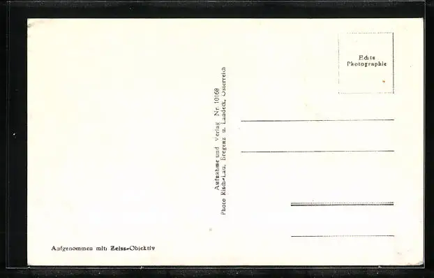 Personenbezogene Daten auf der Rückseite der Karte wurden durch blauen Textmarker unkenntlich gemacht. Die blauen Stellen sind auf die Vorderseite durchgeweicht und wirken sich negativ auf das Postkartenfoto aus