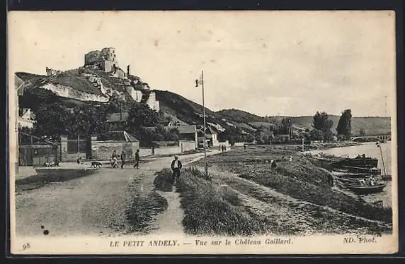 AK Andely, Vue sur le Château Gaillard et la rivière