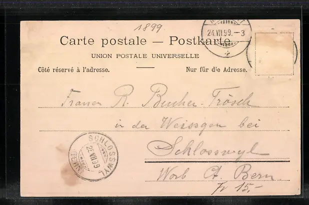alte Ansichtskarte, gelaufen 1899, Briefmarke entfernt, Eckknick rechts oben, guter Zustand