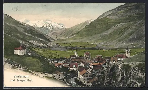 AK Andermatt / Hospenthal, Ortsansicht mit Bergen