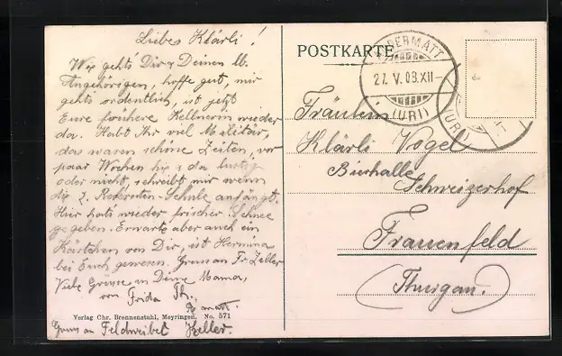 alte Ansichtskarte, gelaufen, Briefmarke entfernt, guter Zustand