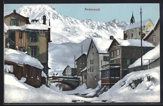 AK Andermatt, Ortsansicht im Winterzauber