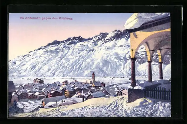AK Andermatt, Ortspartie mit Bätzberg im Winter