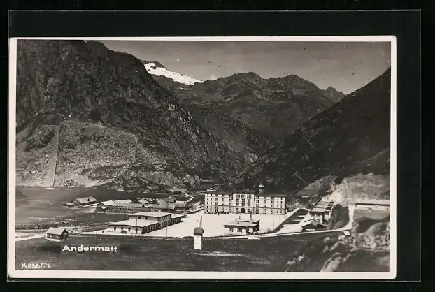 AK Andermatt, Ortspartie mit Bergen