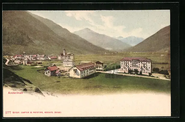 AK Andermatt, Ortstotale mit Blick zur Kirche