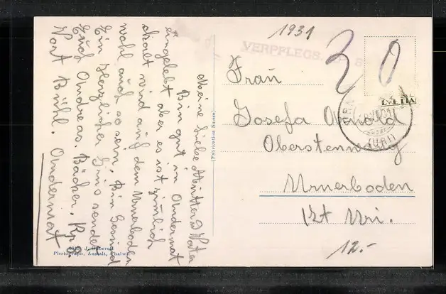 alte Ansichtskarte, gelaufen 1931, Briefmarke entfernt, guter Zustand