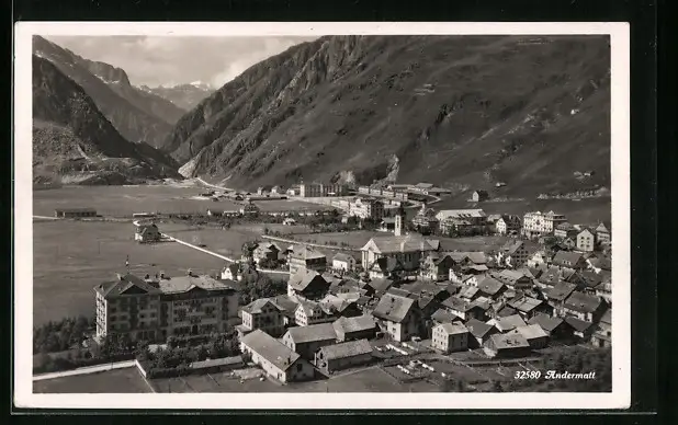 AK Andermatt, Stadttotale mit Talpanorama