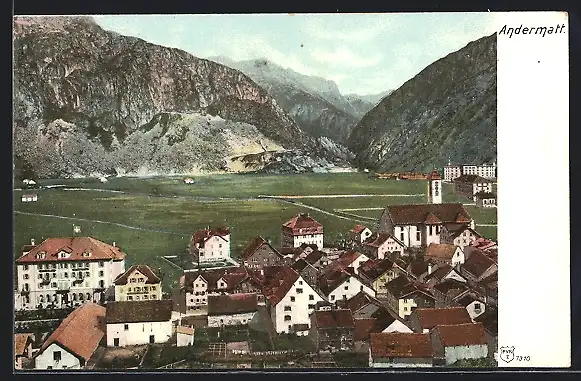 AK Andermatt, Teilansicht des Ortes mit Kirche und Umland