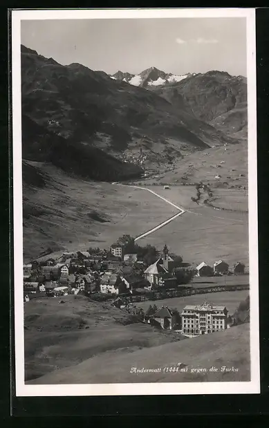 AK Andermatt, Totalansicht gegen die Furka