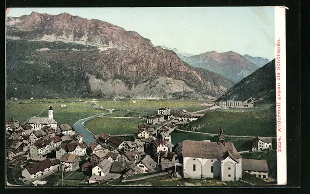 AK Andermatt, Totalansicht gegen die Schöllenen