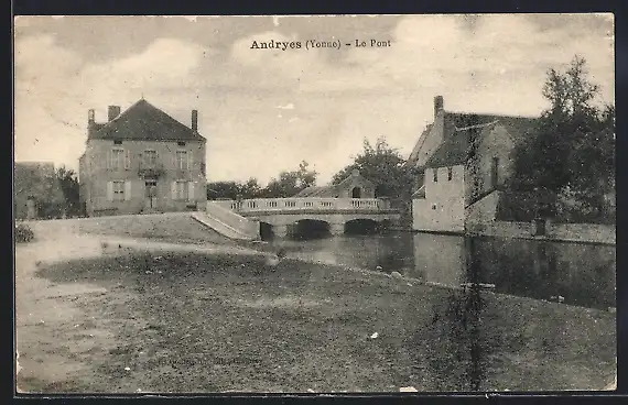 AK Andryes /Yonne, Le Pont et les bâtiments adjacents
