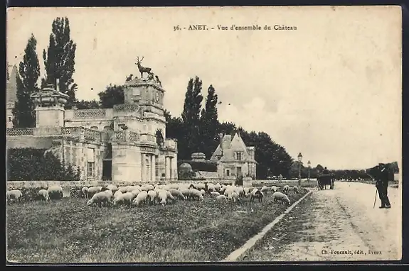 AK Anet, Vue d`ensemble du Château avec troupeau de moutons au premier plan