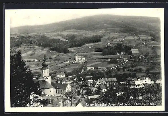 AK Anger bei Weiz, Teilansicht mit Kirche und Strassenpartie