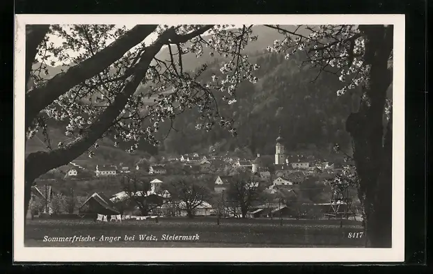 AK Anger bei Weiz in der Steiermark, Panormaansicht mit der Kirche