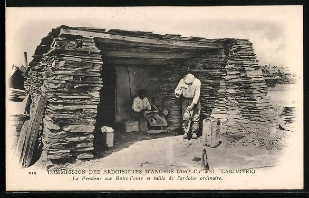 AK Angers, Arbeiter beim Schieferabbau im Steinbruch machen eine Pause