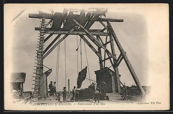 AK Angers, Ardoisières, Enlévement d`un Bloc
