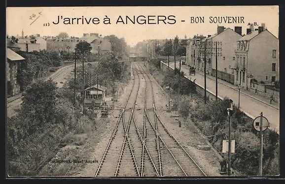 AK Angers, Blick über die Bahntrassen, mit Strassenpartie