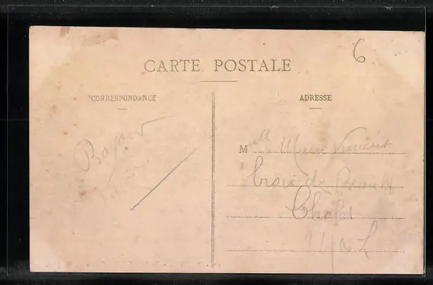Personenbezogene Daten auf der Rückseite der Karte wurden durch blauen Textmarker unkenntlich gemacht. Die blauen Stellen sind auf die Vorderseite durchgeweicht und wirken sich negativ auf das Postkartenfoto aus