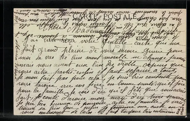 Personenbezogene Daten auf der Rückseite der Karte wurden durch blauen Textmarker unkenntlich gemacht. Die blauen Stellen sind auf die Vorderseite durchgeweicht und wirken sich negativ auf das Postkartenfoto aus