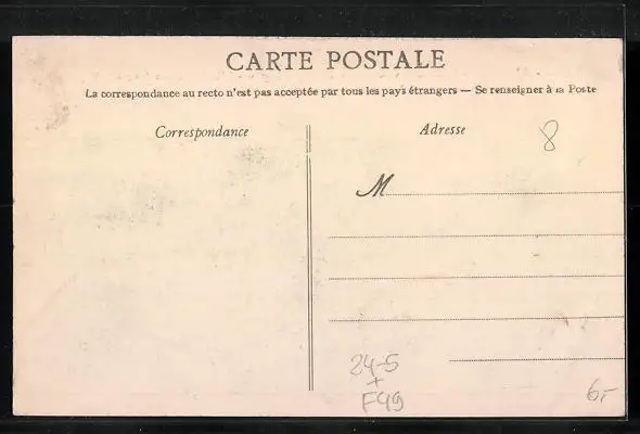 Personenbezogene Daten auf der Rückseite der Karte wurden durch blauen Textmarker unkenntlich gemacht. Die blauen Stellen sind auf die Vorderseite durchgeweicht und wirken sich negativ auf das Postkartenfoto aus