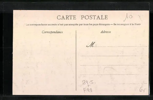 Personenbezogene Daten auf der Rückseite der Karte wurden durch blauen Textmarker unkenntlich gemacht. Die blauen Stellen sind auf die Vorderseite durchgeweicht und wirken sich negativ auf das Postkartenfoto aus