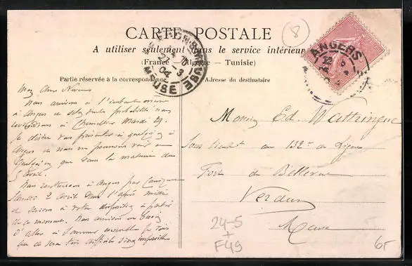 Personenbezogene Daten auf der Rückseite der Karte wurden durch blauen Textmarker unkenntlich gemacht. Die blauen Stellen sind auf die Vorderseite durchgeweicht und wirken sich negativ auf das Postkartenfoto aus