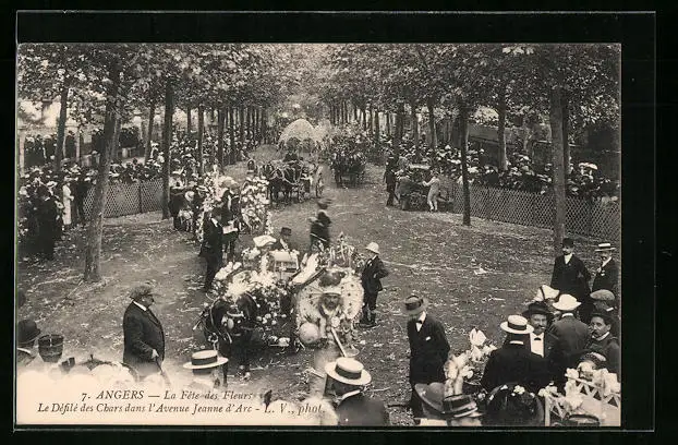 AK Angers, La Fête des Fleurs, Le Défilé des Chars dans l`Avenue Jeanne d`Arc