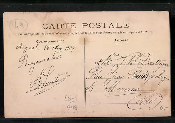 gelaufen 1907, Eckknick oben links, guter Zustand