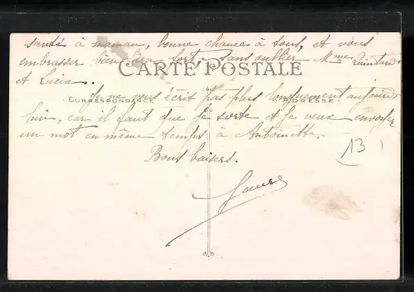 Personenbezogene Daten auf der Rückseite der Karte wurden durch blauen Textmarker unkenntlich gemacht. Die blauen Stellen sind auf die Vorderseite durchgeweicht und wirken sich negativ auf das Postkartenfoto aus
